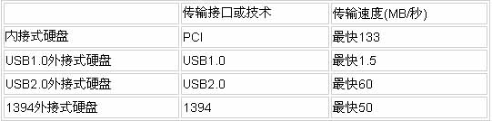 4.外接式與內(nèi)接式硬盤數(shù)據(jù)傳輸速度比較表